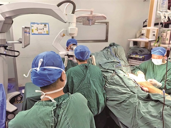 缝线细如发丝,微米级不直接连接血管,十堰泰和医生奋战14小时,成功将受伤女工左手4根手指转移至右手。